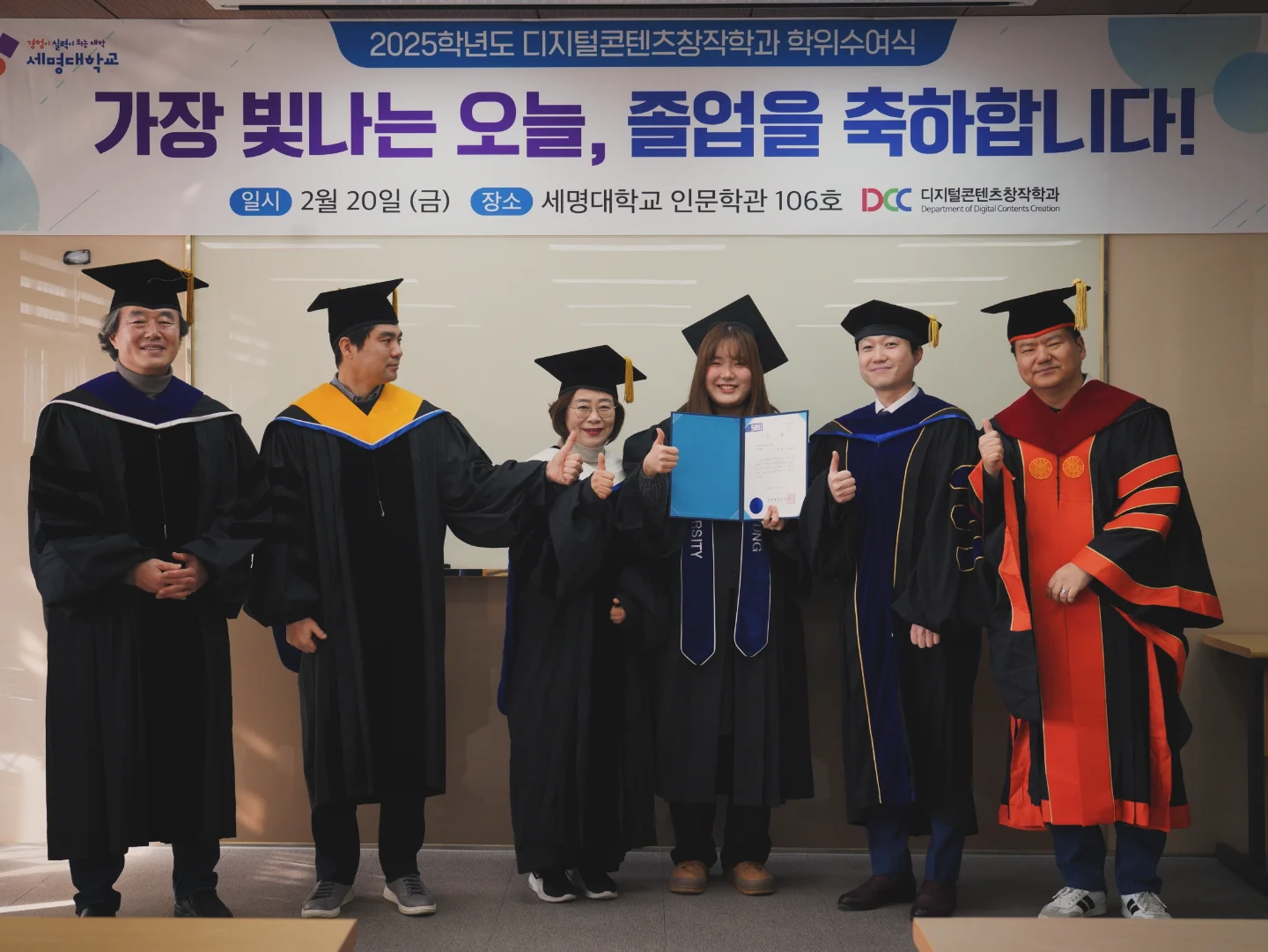 본문 시작 홈으로 MCC News 학과소개 교수소개 학과과정 MCC News MCC SNS 홈페이지가이드 학과 및 재학생 학과 및 재학생 교수 및 졸업생 미디어 정보통 학과 및 재학생 페이스북 트위터 프린트 2025학년도 디지털콘텐츠창작학과 학위수여식 미디어콘텐츠창작학과 690 2026-03-02 🎓디지털콘텐츠창작학과 학위수여식🎓 2025년을 끝으로 졸업하시는 선배님들의 학위수여식이 2026년 2월 20일 금요일 인문학관에서 진행되었습니다! 이제 인생의 첫 페이지를 넘겨 새롭고 무궁무진한 꿈을 써내려갈 멋진 선배님들의 졸업을 진심으로 축하드리며, 앞으로의 모든 날이 소설처럼 아름답기를, 저희 후배들이 열심히 응원하겠습니다!🎉😊 목록 이전미디어콘텐츠창작학과 신입생 꿈 설계학기 2일차.zip 다음 2026학년도 미디어콘텐츠창작학과 개강총회 담당부서 : 미디어콘텐츠창작학과 담당자 : - 연락처 : 043-649-1741 최종수정일 : 2024-10-26 만족도조사 만족도 조사 이 페이지에서 제공하는 정보에 대하여 만족하시나요? 매우만족 만족 보통 불만족 매우불만족