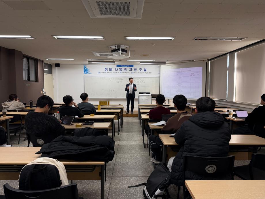 본문 시작 홈으로 학과 소식 학과소개 취업 및 진로 언론 및 보도 학과 소식 대학원 홈페이지가이드 행사사진게시판 행사사진게시판 공지사항 일반자료실 강의자료실 부동산학보 동아리 행사사진게시판 페이스북 트위터 프린트 2025학년도 부동산컨설팅 특강 부동산지적학과 202 2025-12-05 2025년 12월 4일(목) 13:30~15:20, (주)에스에이치프라퍼티 구찬림 대표님을 모시고 정비사업의 사업비 구조, 예산 수립 과정, HUG 연계 자금 조달 방식 등 실무 중심 특강을 진행했습니다. 학생들은 공사비 절감 및 주요 지출 관리 전략을 비롯해 정비사업 재무관리 전반에 대한 실질적인 역량을 강화하는 유익한 시간을 가졌습니다. 목록 이전부동산지적학과 자산관리특강 현수막 게시 이전제12회 서울부동산포럼 부동산지적학과 김관호 학생 장학생 선발 담당부서 : 부동산지적학과 담당자 : - 연락처 : 043-649-1369 최종수정일 : 2024-10-26 만족도조사 만족도 조사 이 페이지에서 제공하는 정보에 대하여 만족하시나요? 매우만족 만족 보통 불만족 매우불만족