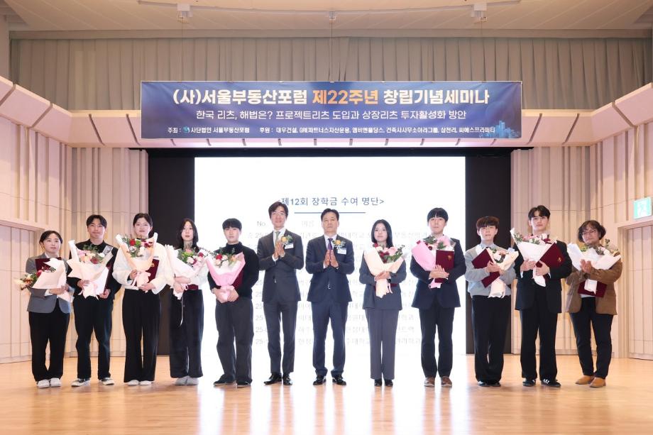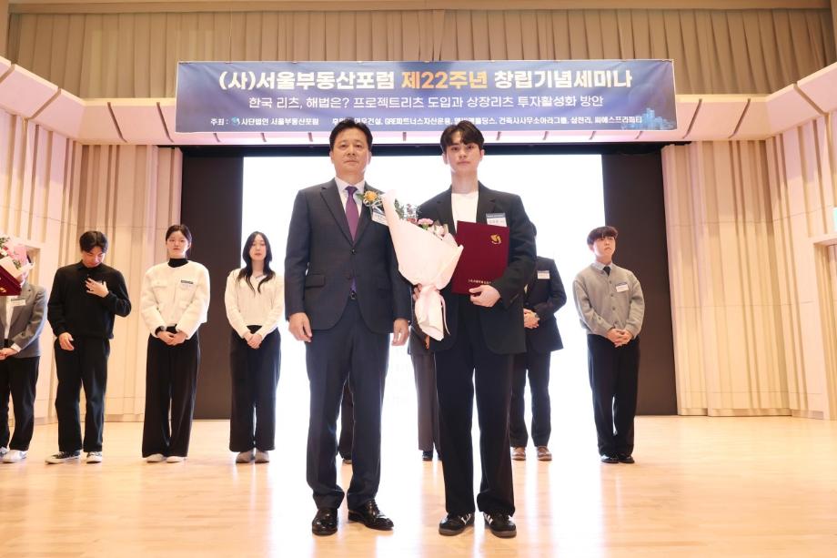 본문 시작 홈으로 학과 소식 학과소개 취업 및 진로 언론 및 보도 학과 소식 대학원 홈페이지가이드 행사사진게시판 행사사진게시판 공지사항 일반자료실 강의자료실 부동산학보 동아리 행사사진게시판 페이스북 트위터 프린트 제12회 서울부동산포럼 부동산지적학과 김관호 학생 장학생 선발 부동산지적학과 70 2025-11-07 행사명 : 제12회 서울부동산포럼 부동산학과 김관호 학생 장학생 선발 일시 : 2025.11.06. (목요일) 13:30 ~16:30 내용 : 부동산지적학과 3학년 김관호 학생이 서울부동산포럼에서 주관하는 '장학생'으로 선발되었습니다. 성실하게 학업과 학교생활에 임해온 학생은 이번 선발로 장학금 100만 원을 수여받았습니다. 학과는 장학생 선발을 진심으로 축하하며, 앞으로도 학업과 다양한 활동에 매진할 것을 응원합니다. 작성자: 부동산지적학과 조교 목록 다음 2025학년도 부동산컨설팅 특강 다음 2025년 2학기 도시경제부동산 대학원 종강모임 담당부서 : 부동산지적학과 담당자 : - 연락처 : 043-649-1369 최종수정일 : 2024-10-26 만족도조사 만족도 조사 이 페이지에서 제공하는 정보에 대하여 만족하시나요? 매우만족 만족 보통 불만족 매우불만족