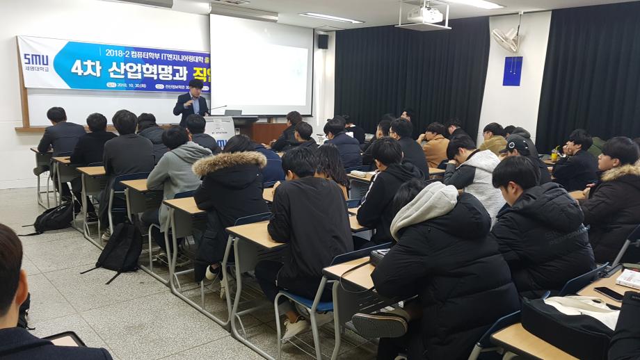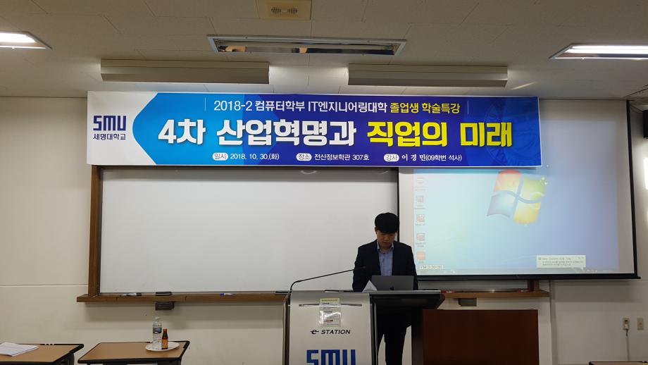 본문 시작 홈으로 학부활동 학부소개 학부활동 교육과정 커뮤니티 학부생활 입학안내 홈페이지가이드 학부갤러리 학부행사 학생회 활동 전공 동아리 학부갤러리 학부갤러리 페이스북 트위터 프린트 181030 IT단과대학 졸업생 취업특강 컴퓨터학부 6831 2018-10-30 전산 307호에서 컴퓨터학부 졸업생 전자부품연구원(KETI) 지능형영상처리센터 연구원 이경민(09학번, 2016년도 졸업) '4차 산업혁명과 직업의 미래' 라는 주제로 강의를 하였습니다. 목록 다음 181101 제1회 IT엔지니어링대학 학술발표대회 다음 181127 컴퓨터실무체험 교과목 취업특강 담당부서 : 컴퓨터학부 담당자 : - 연락처 : 043-649-1272 최종수정일 : 2024-10-26 만족도조사 만족도 조사 이 페이지에서 제공하는 정보에 대하여 만족하시나요? 매우만족 만족 보통 불만족 매우불만족