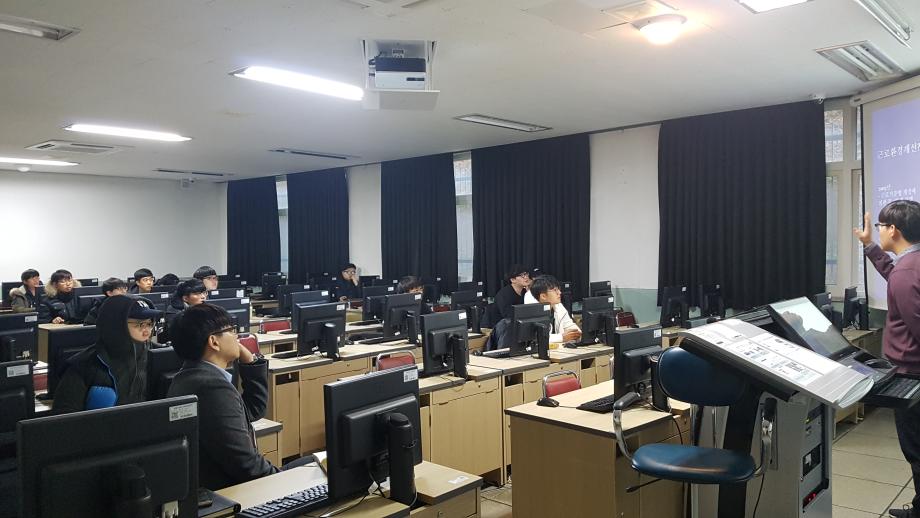 본문 시작 홈으로 학부활동 학부소개 학부활동 교육과정 커뮤니티 학부생활 입학안내 홈페이지가이드 학부갤러리 학부행사 학생회 활동 전공 동아리 학부갤러리 학부갤러리 페이스북 트위터 프린트 181127 컴퓨터실무체험 교과목 취업특강 컴퓨터학부 6509 2018-11-27 전산관 106호에서 컴퓨터실무체험 교과목 수강 학생들이 (주)좋은이엔지 환경영향평가팀 김시형 팀장님의 취업특강을 듣는 유익한 시간을 가졌습니다. 목록 이전181030 IT단과대학 졸업생 취업특강 다음 181129 컴퓨터실무체험 교과목 취업특강 담당부서 : 컴퓨터학부 담당자 : - 연락처 : 043-649-1272 최종수정일 : 2024-10-26 만족도조사 만족도 조사 이 페이지에서 제공하는 정보에 대하여 만족하시나요? 매우만족 만족 보통 불만족 매우불만족