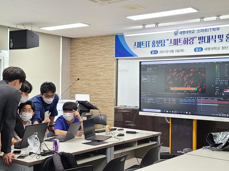 첫 홍보 활동으로 스마트IT학부 홍보영상을 제작하여 학부 교수님들과 재학생에게 시연하였다.