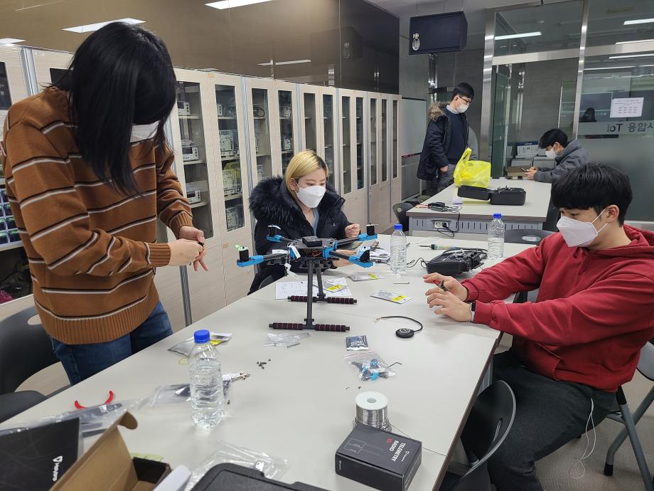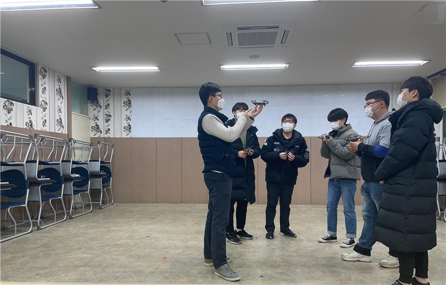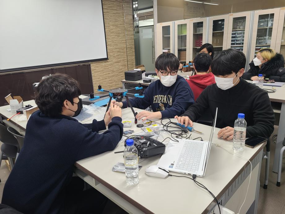 본문 시작 홈으로 SMIT 소식 SMIT 소개 SMIT 교육 SMIT 취업 SMIT 소식 SMIT 입학 홈페이지가이드 갤러리 공지사항 갤러리 경진대회 동아리 갤러리 페이스북 트위터 프린트 [스마트IT학부]동계방학 특별활동 진행 스마트IT학부 2306 2022-02-23 스마트IT학부에서는 21.12.28 ~ 22.02.15 까지 매주 화요일 마다 2시간씩 동계방학 특별활동을 진행하였다. - 활동내용 1주 : 드론 프로그래밍 기초 2주~4주 : 드론 프로그래밍 실습 5주 : 인공지능응용 드론 기초 6주 : 인공지능응용 드론 실습 7주 : 드론 제작 실습 목록 이전[스마트IT학부] 단기실무 특강 진행(한상익교수님) 이전스마트IT학부_꿈설계학기 진행 담당부서 : 스마트IT학부 담당자 : - 연락처 : 043-649-1275 최종수정일 : 2024-10-26 만족도조사 만족도 조사 이 페이지에서 제공하는 정보에 대하여 만족하시나요? 매우만족 만족 보통 불만족 매우불만족