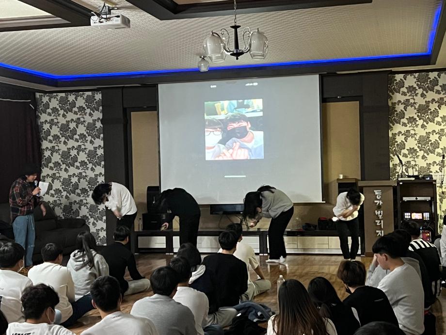 본문 시작 홈으로 SMIT 소식 SMIT 소개 SMIT 교육 SMIT 취업 SMIT 소식 SMIT 입학 홈페이지가이드 갤러리 공지사항 갤러리 경진대회 동아리 갤러리 페이스북 트위터 프린트 스마트IT학부 학부MT개최 스마트IT학부 3880 2022-11-10 스마트IT학부는 2022.11.10(목)~11.11(금) 이틀동안 학부엠티를 다녀왔다. 영월 동강빌리지로 재학생 약40여명이 다녀왔다. 야외에서 피구, 족구 등 스포츠 게임을 한 후 교수님들과 바베큐 파티를 했다. 저녁식사 후 실내 레크레이션이 이루어졌으며, 추억의 게임과 여러가지 게임들이 진행 되었다. 학생들 모두 즐거운 시간을 보냈으며, 선 후배간 단합을 이룰 수 있었다. 목록 이전청주 양청고등학교 중등교육 연계프로그램 시행 다음 스마트IT학부 농활활동 시행 담당부서 : 스마트IT학부 담당자 : - 연락처 : 043-649-1275 최종수정일 : 2024-10-26 만족도조사 만족도 조사 이 페이지에서 제공하는 정보에 대하여 만족하시나요? 매우만족 만족 보통 불만족 매우불만족