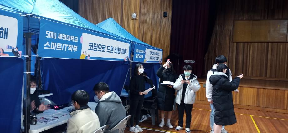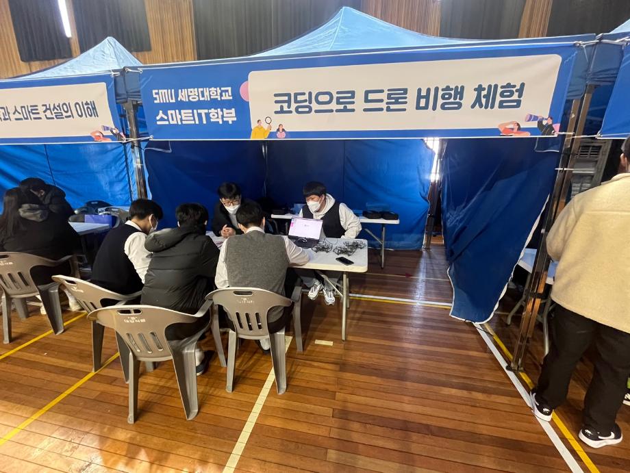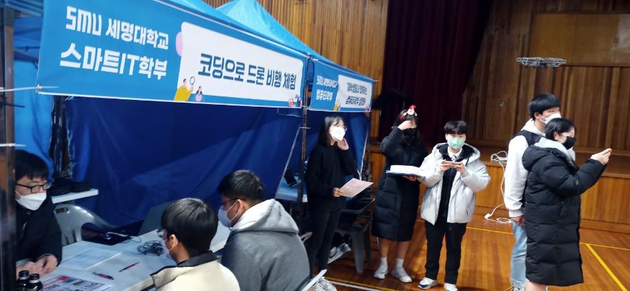 본문 시작 홈으로 SMIT 소식 SMIT 소개 SMIT 교육 SMIT 취업 SMIT 소식 SMIT 입학 홈페이지가이드 갤러리 공지사항 갤러리 경진대회 동아리 갤러리 페이스북 트위터 프린트 스마트IT학부 단양고 중등교육 연계프로그램 시행 스마트IT학부 3907 2022-12-22 스마트IT학부는 2022.12.22(목)에 단양고등학교 전공체험에 참가하였다. 한상익 교수님 주관으로 진행 되었으며, 스마트IT학부 재학생들이 보조 학생으로 참가하였다. 전공체험은 '코딩으로 드론 비행 체험'이라는 주제로 진행되었다. 단양고등학교 학생들에게 드론 조종법을 교육하고, 드론 비행 체험을 진행하게 하였다. 또한 스마트IT학부의 드론,자율주행차와 인공지능응용 전공에 대하여 소개하였다. 목록 이전스마트IT학부 2022학년도 2학기 전공학습동아리 수료 다음 스마트IT학부 정보처리기사 자격증 특강 시행 담당부서 : 스마트IT학부 담당자 : - 연락처 : 043-649-1275 최종수정일 : 2024-10-26 만족도조사 만족도 조사 이 페이지에서 제공하는 정보에 대하여 만족하시나요? 매우만족 만족 보통 불만족 매우불만족