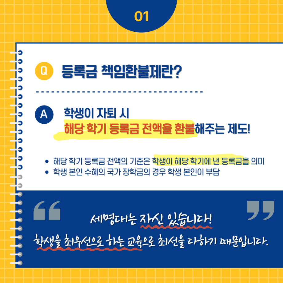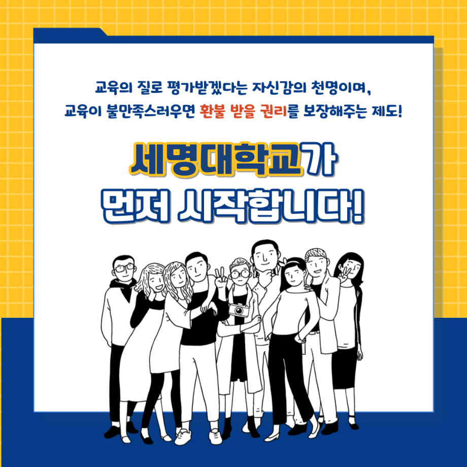 '등록금 책임환불제'를 통해 세명대학교의 교육 자신감과 높은 교육의 질을 부담없이 누려보세요!