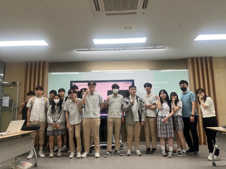 본문 시작 홈으로 SMIT 소식 SMIT 소개 SMIT 교육 SMIT 취업 SMIT 소식 SMIT 입학 홈페이지가이드 갤러리 공지사항 갤러리 경진대회 동아리 갤러리 페이스북 트위터 프린트 스마트IT학부 제일고 특강시행 스마트IT학부 3202 2023-05-23 스마트IT학부는 2023.05.23(화)에 첨단정보학관 406호에서 제천제일고 학생 13명을 대상으로 중등교육 연계프로그램을 시행하였다. 한상익 교수님 주최로 '재미있는 스마트 드론 코딩'이라는 주제로 교수님의 특강과 코딩으로 드론을 날리는 전공 체험을 시행하였다. 제천제일고 학생들이 코딩에 대해 심층있게 이해하고 스마트IT학부를 홍보할 수 있는 유익한 시간이었다. 목록 이전스마트IT학부 청룡체전 예선 참가 다음 스마트IT학부 MT 개최 담당부서 : 스마트IT학부 담당자 : - 연락처 : 043-649-1275 최종수정일 : 2024-10-26 만족도조사 만족도 조사 이 페이지에서 제공하는 정보에 대하여 만족하시나요? 매우만족 만족 보통 불만족 매우불만족