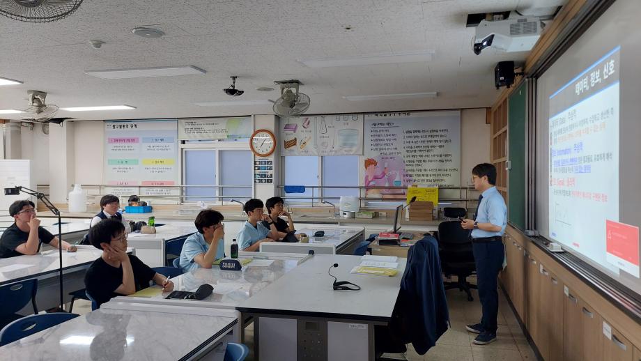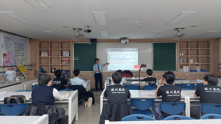 본문 시작 홈으로 SMIT 소식 SMIT 소개 SMIT 교육 SMIT 취업 SMIT 소식 SMIT 입학 홈페이지가이드 갤러리 공지사항 갤러리 경진대회 동아리 갤러리 페이스북 트위터 프린트 제천고등학교 자연이공 아카데미 스마트IT학부 5628 2023-05-26 조면균 교수는 2023년 5월 18일 제천고등학교가 주최하는 자연과학아카데미 특강에서 "생활속의 첨단정보통신 기술"이라는 제목으로 특강을 진행하였다. 과학융합부장 선생님을 비롯한 8명의 학생들이 참석하여 생활속에서 겪는 재미있는 통신기술에 대해서 배우고 세명대 스마트IT학부의 소개도 받는 유익한 시간이었다. 목록 이전스마트IT학부 MT 개최 다음 스마트IT로 너와 나를 IT(잇)다 ! 담당부서 : 스마트IT학부 담당자 : - 연락처 : 043-649-1275 최종수정일 : 2024-10-26 만족도조사 만족도 조사 이 페이지에서 제공하는 정보에 대하여 만족하시나요? 매우만족 만족 보통 불만족 매우불만족