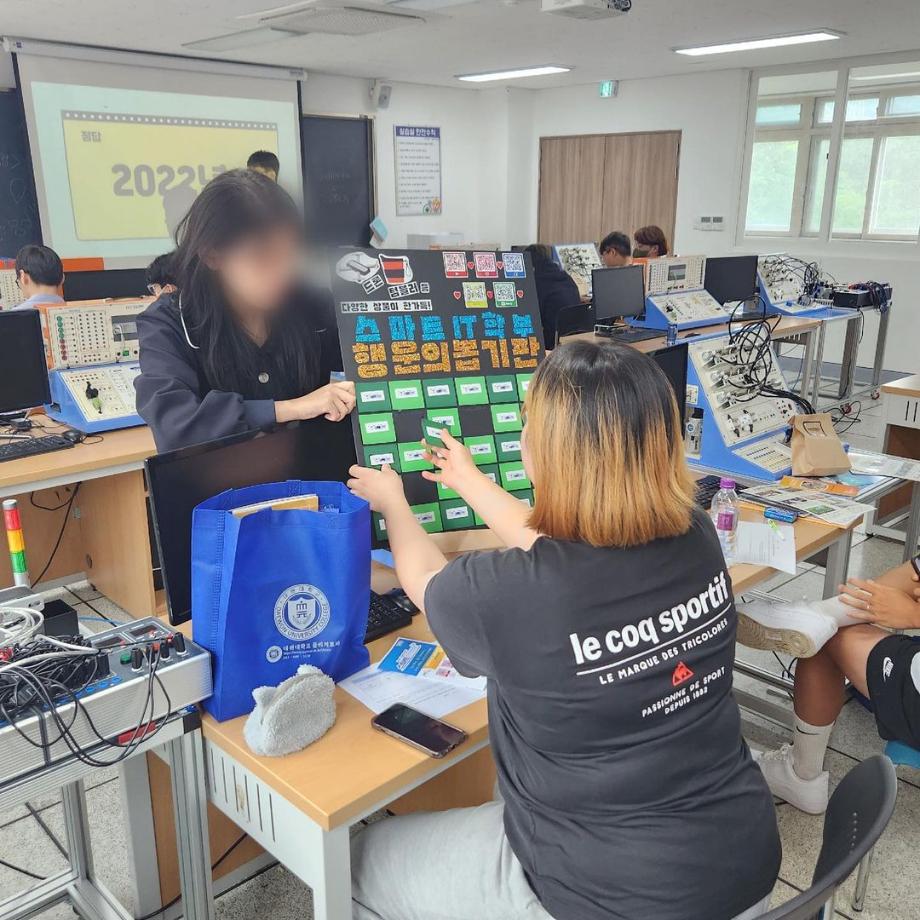 본문 시작 홈으로 SMIT 소식 SMIT 소개 SMIT 교육 SMIT 취업 SMIT 소식 SMIT 입학 홈페이지가이드 갤러리 공지사항 갤러리 경진대회 동아리 갤러리 페이스북 트위터 프린트 스마트IT학부 제천 디지털전자고등학교 입시홍보 스마트IT학부 4340 2023-09-04 2023.08.31.목요일에 세명대학교 스마트IT학부는 입시 홍보 및 드론 조종 체험을 위하여 제천디지털전자고등학교에 방문하였습니다! 세명대와 스마트IT 학부에 대해 소개하고 알리며 퀴즈로 통하여 많은 경품들을 추첨하고 드론 날리기를 진행하는 등 유익한 홍보활동을 다녀왔습니다! 고등학교 학생들의 적극적인 참여와 많은 관심에 감사드립니다 목록 이전2023학년도 자기설계 해외배낭연수 다음 2024학년도 스마트IT학부 수시모집 안내! 담당부서 : 스마트IT학부 담당자 : - 연락처 : 043-649-1275 최종수정일 : 2024-10-26 만족도조사 만족도 조사 이 페이지에서 제공하는 정보에 대하여 만족하시나요? 매우만족 만족 보통 불만족 매우불만족