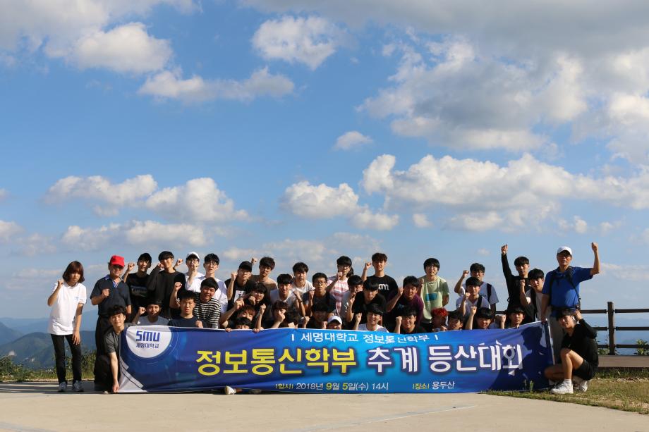 본문 시작 홈으로 SMIT 소식 SMIT 소개 SMIT 교육 SMIT 취업 SMIT 소식 SMIT 입학 홈페이지가이드 갤러리 공지사항 갤러리 경진대회 동아리 갤러리 페이스북 트위터 프린트 2018학년도 정보통신학부 용두산 등산 정보통신학부 7058 2018-09-27 정보통신학부에서는 2018년 09월 05일 18학번 신입생들을 대상으로 용두산 등산을 실시하였다. 이날 참가한 신입생들은 즐거운 마음으로 산행하면서 용두산의 아름다움을 체험할 수 있었다. 이번 용두산 등산을 계기로 신입생들의 유대감이 더욱 더 향상 되었고 몸과 마음을 단련할 수 있는 좋은 계기가 되었다. 목록 이전2017학년도 후기 학위수여식 개최 다음 2018학년도 IT엔지니어링대학 임직원 취업특강 담당부서 : 스마트IT학부 담당자 : - 연락처 : 043-649-1275 최종수정일 : 2024-10-26 만족도조사 만족도 조사 이 페이지에서 제공하는 정보에 대하여 만족하시나요? 매우만족 만족 보통 불만족 매우불만족
