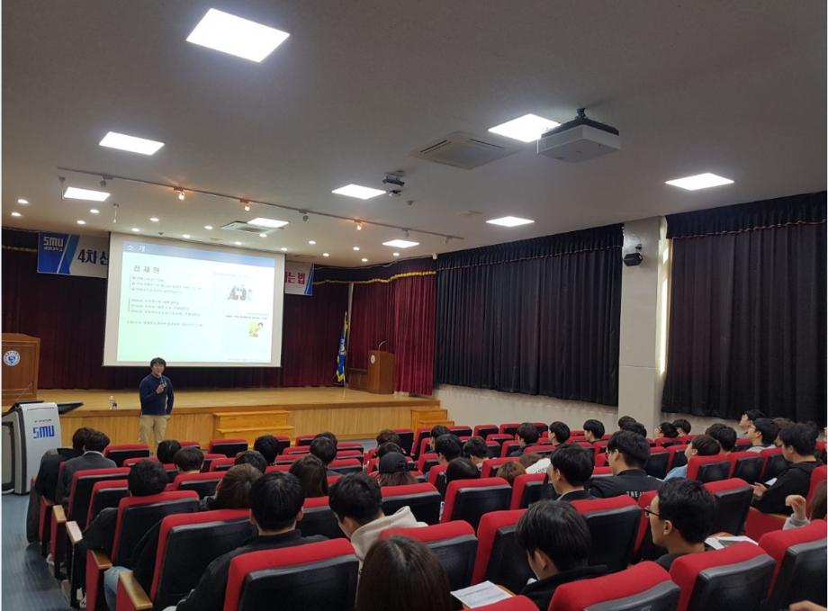 정보통신학부에서는 2018학년도 IT엔지니어링대학 졸업생 취업특강으로 10월 24일(수) (주)에너지코드 대표이사를 모시고 4차 산업시대의 취업준비 및 취업전략에 관한 특강을 진행하였다. 특강은 민송도서관 시청각실(107호)에서 진행되었으며 '4차 산업혁명시대의 융합형 인재로 성장하고 살아가는 법'을 주제로 진행되었다. 이 특강을 통해 재학생들은 취업준비에 필요한 견문을 넓힐 수 있었고 전문지식 및 현장실무능력의 중요성을 깨달을 수 있게 되었다.
