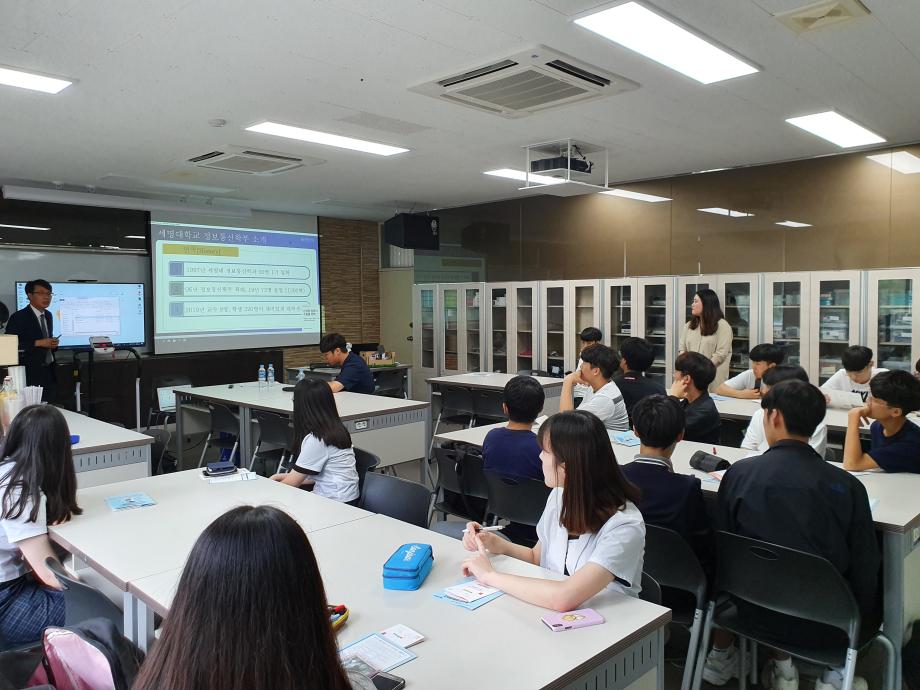본문 시작 홈으로 SMIT 소식 SMIT 소개 SMIT 교육 SMIT 취업 SMIT 소식 SMIT 입학 홈페이지가이드 갤러리 공지사항 갤러리 경진대회 동아리 갤러리 페이스북 트위터 프린트 2019학년도 진로-진학 박람회 정보통신학부 6203 2019-07-19 지난 07월 12일 금요일에 정보통신학부에서는 세명대학교 제4회 진로-진학 박람회에 참가하였다. ‘정보통신학부 2019 캡스톤디자인 우수작 시연 및 감상’이라는 주제로 학부 교수님의 정보통신학부 소개 및 4학년 재학생들의 발표로 진행되었다. 참여 학생들은 약 40여명으로 제천고, 세명고, 제천여고 학생들이 참석하였다. 목록 이전2019학년도 하계방학 중 국제네트워크(CCNA) 전공자격증 특강 진행 다음 2018학년도 후기 학위수여식 개최 담당부서 : 스마트IT학부 담당자 : - 연락처 : 043-649-1275 최종수정일 : 2024-10-26 만족도조사 만족도 조사 이 페이지에서 제공하는 정보에 대하여 만족하시나요? 매우만족 만족 보통 불만족 매우불만족