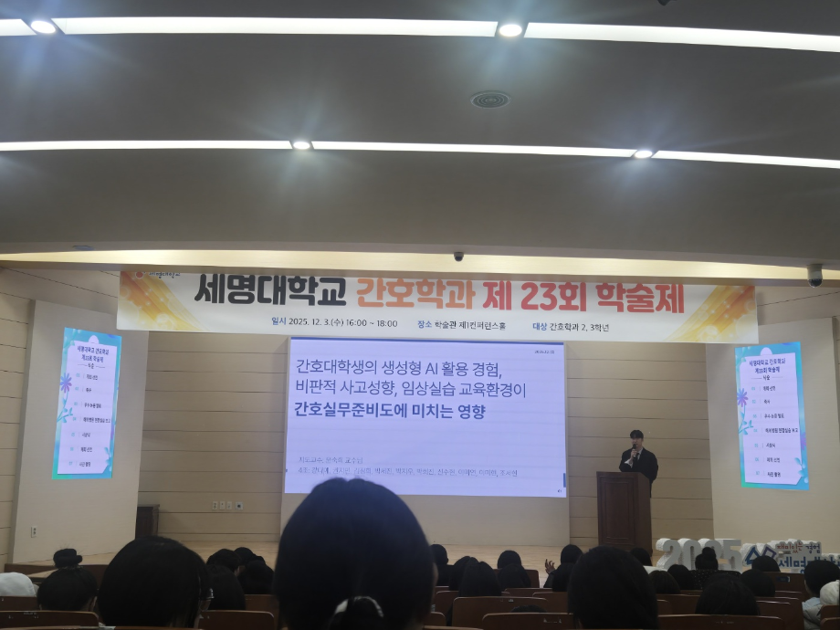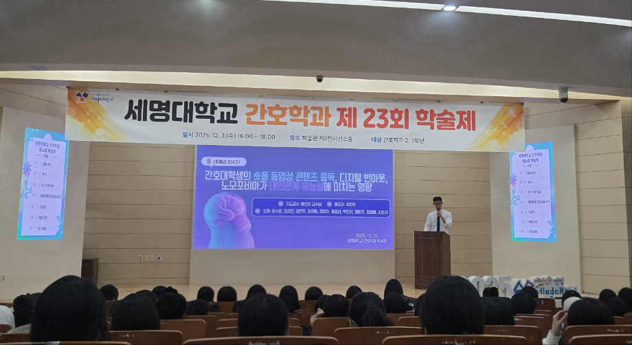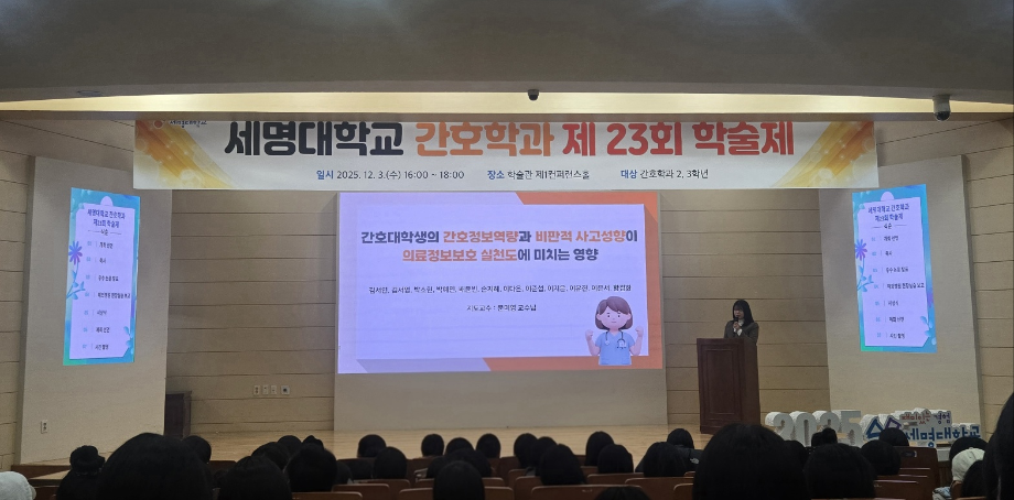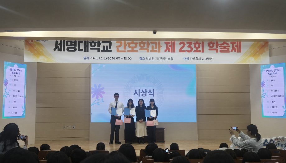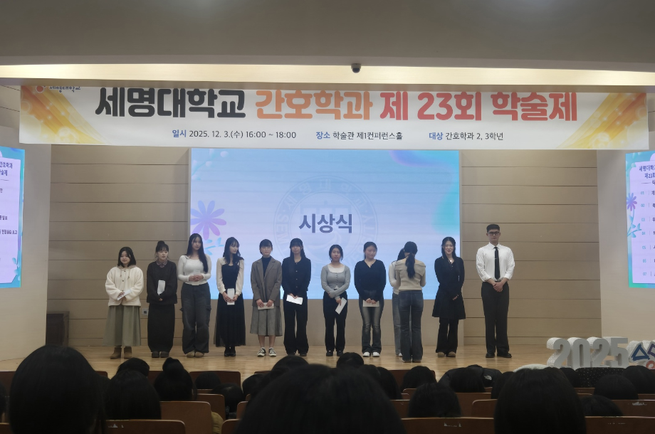 본문 시작 홈으로 커뮤니티 학과소개 교수소개 교육과정 학과소식 학과특성화 사업 커뮤니티 홈페이지가이드 포토갤러리 학사일정 포토갤러리 학생회 학과동아리 학과 취업정보 동창회 학과운영개선의견 발전기금 포토갤러리 페이스북 트위터 프린트 제 23회 간호학과 학술제 간호학과 512 2025-12-08 12/3 진행된 📝 2024 학술제 발표와 ✈ 해외 인턴십 경험 공유 후기가 학과 블로그에 업로드되었습니다. 발표 현장과 생생한 경험담이 궁금하다면 아래 링크를 확인해주세요 👇 🔗 링크 https://blog.naver.com/nursing_smu_official/224099825798 목록 이전📍 ‘임상실습 안전사고 ZERO를 위하여’ 특강 담당부서 : 간호학과 담당자 : - 연락처 : 043-649-1357 최종수정일 : 2024-10-26 만족도조사 만족도 조사 이 페이지에서 제공하는 정보에 대하여 만족하시나요? 매우만족 만족 보통 불만족 매우불만족