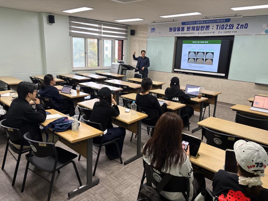 본문 시작 홈으로 커뮤니티 학과소개 학과과정 대학원 커뮤니티 연구동아리 홈페이지가이드 포토갤러리 학과공지 채용정보 학과일정 포토갤러리 유튜브 인스타그램 취업현황 학생회 조직도 졸업생 숏터뷰 포토갤러리 페이스북 트위터 프린트 2025학년도 3차 화장품생명공학세미나 바이오코스메틱학과 1149 2025-10-17 2025학년도 3차 화장품생명공학세미나를 진행했습니다. 목록 이전2025학년도 2차 S-BOOT 특강_Evolution of K-Beauty 다음 2025학년도 F.P.L 동아리 클렌징 오일 및 클렌징 밤 제조 실습 담당부서 : 바이오코스메틱학과 담당자 : - 연락처 : 043-649-1638 최종수정일 : 2024-10-26 만족도조사 만족도 조사 이 페이지에서 제공하는 정보에 대하여 만족하시나요? 매우만족 만족 보통 불만족 매우불만족