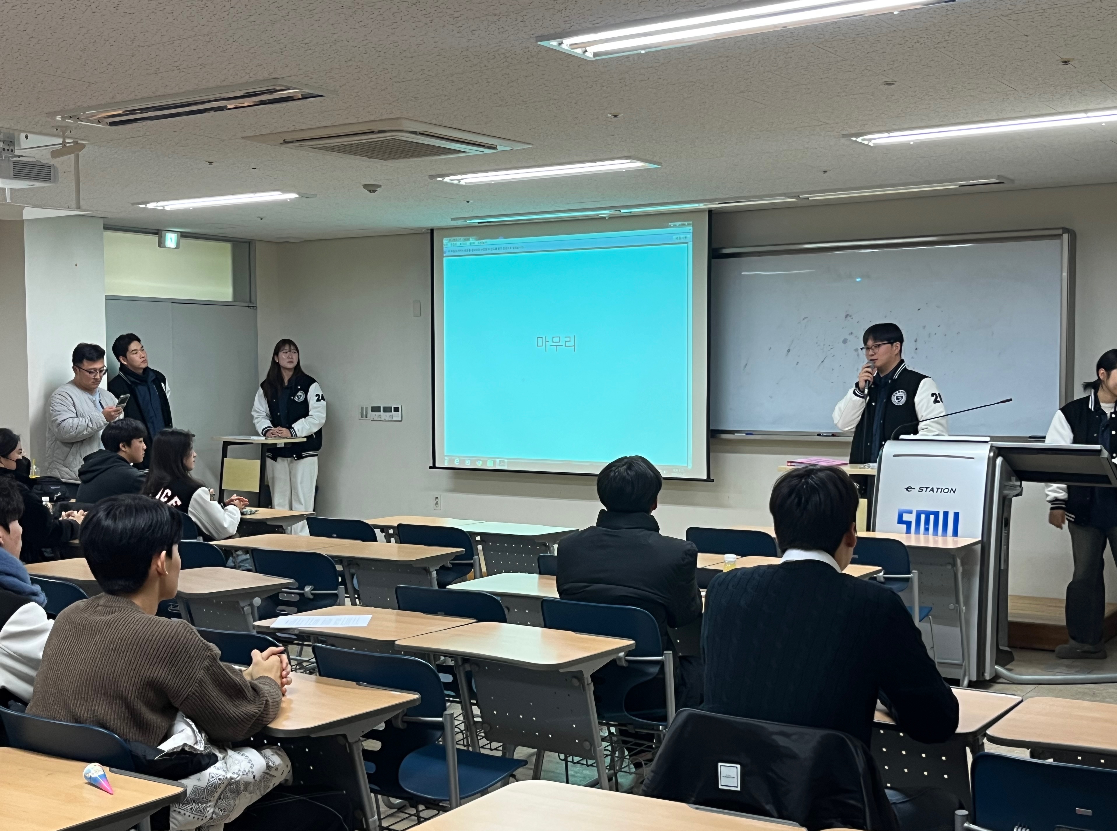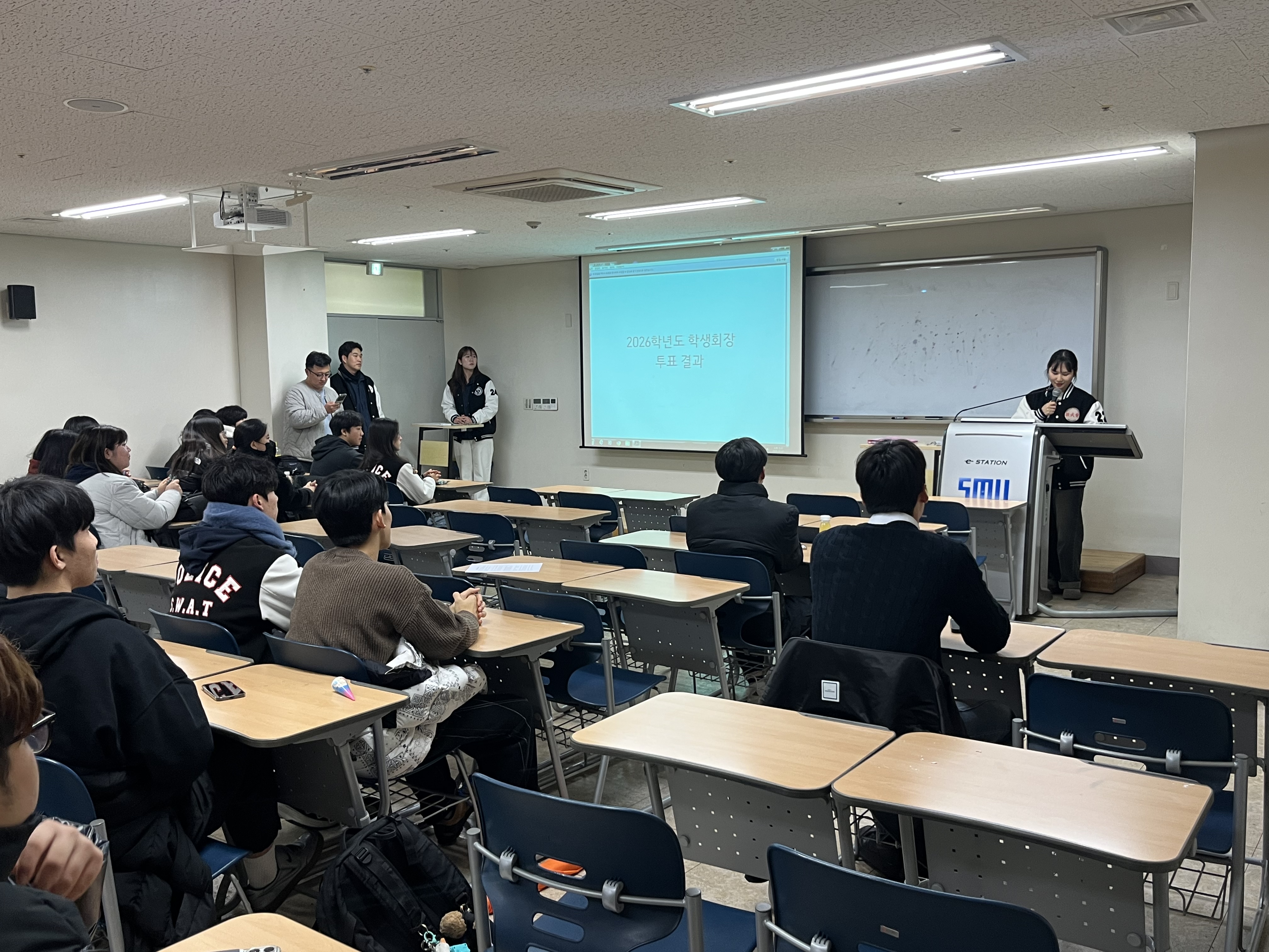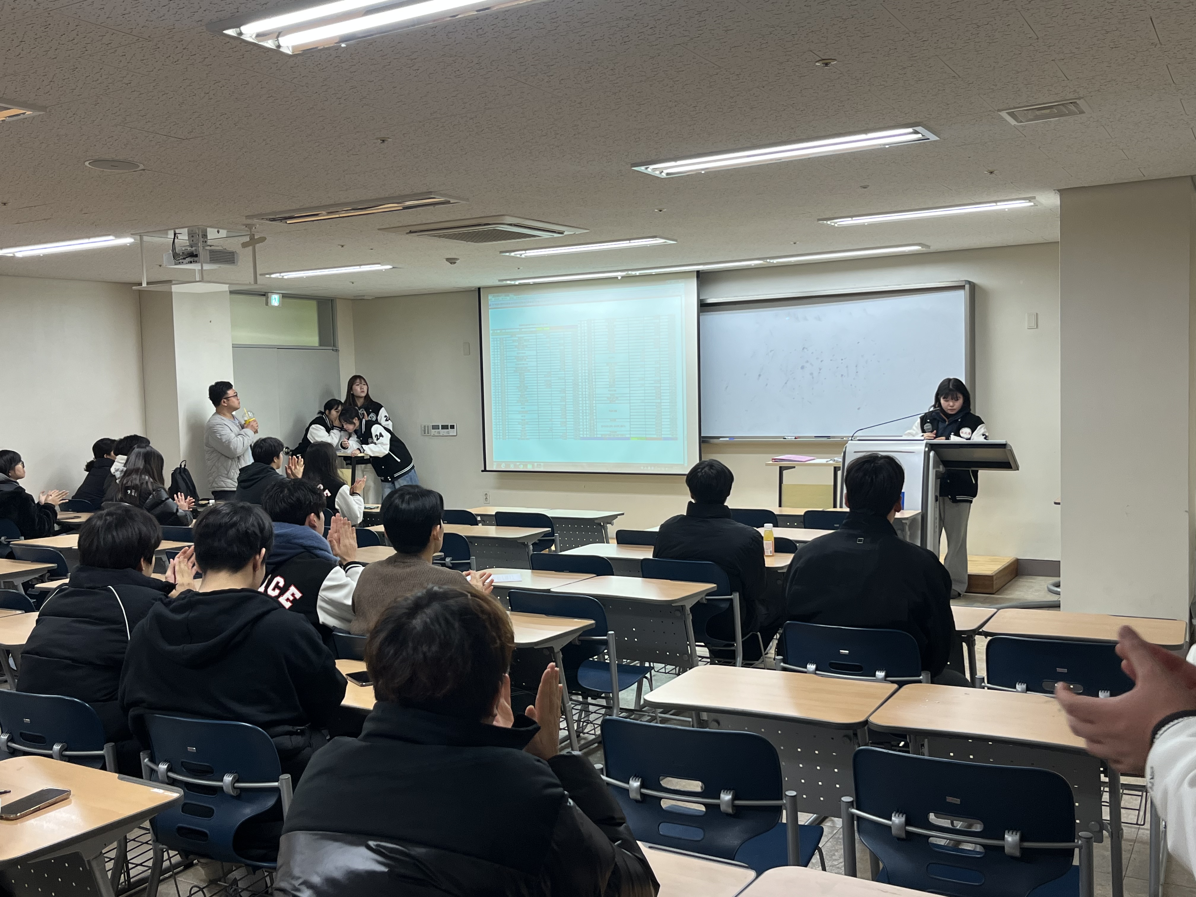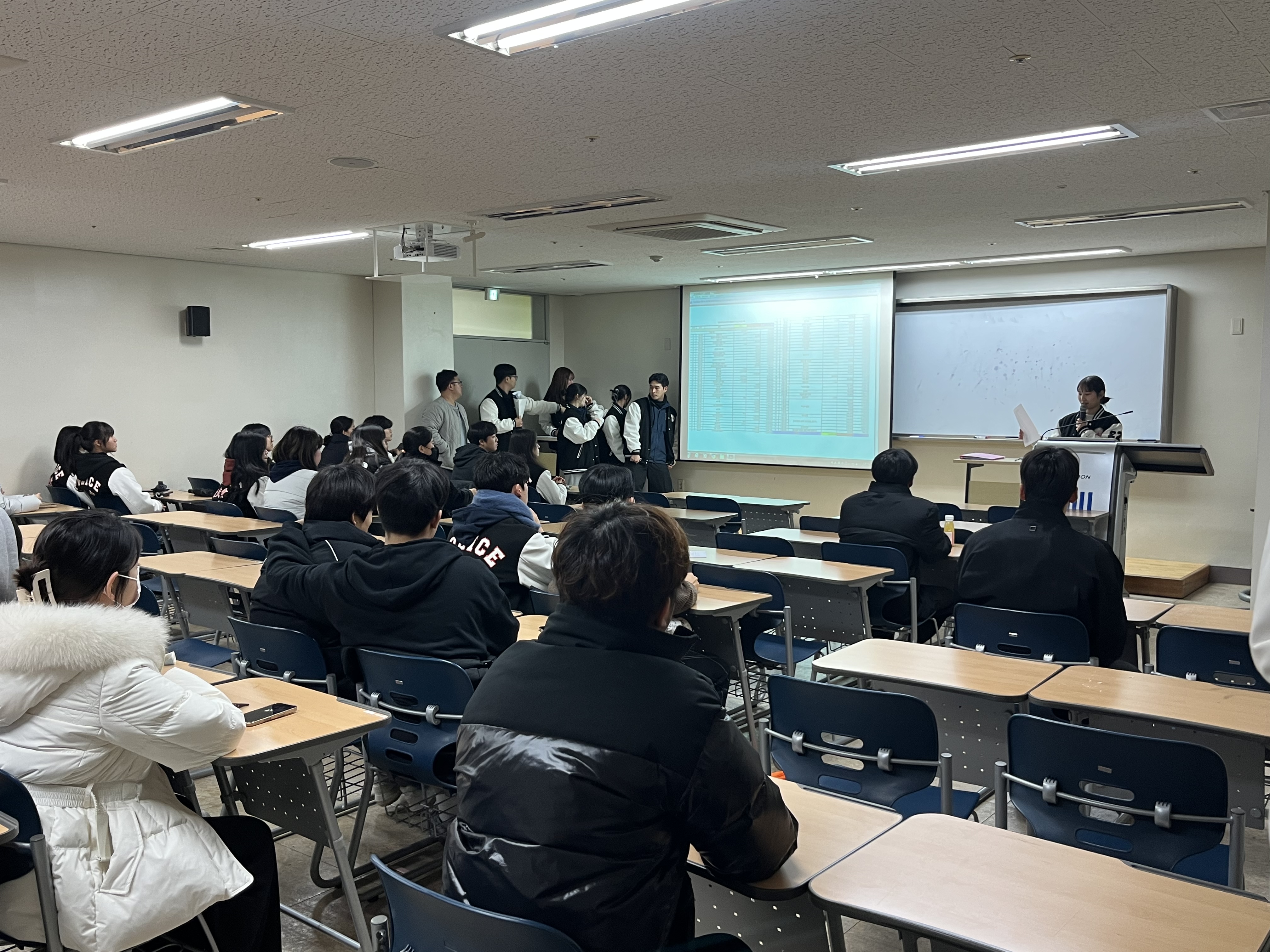 진행한 종강총회에선 학기를 마무리하며 2025년도에 기획한 행사들과 사용했던 학생회비 지출내역 등을 공개하였고, 2026학년도 경찰학과 학회장 부학회장 당선 발표를 하였습니다 종강총회에 참여해주신 분들께 감사인사 드립니다.