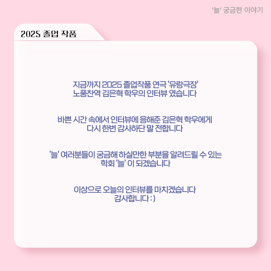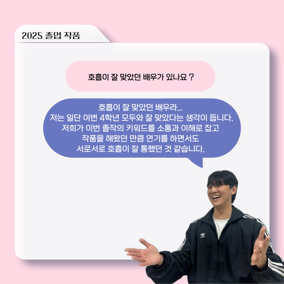 본문 시작 홈으로 커뮤니티 학과소개 입학정보 교수소개 학과과정 커뮤니티 공연예매 안내 홈페이지가이드 포토갤러리 공지사항 포토갤러리 작품DB 동아리 학사일정 학생회 포토갤러리 페이스북 트위터 프린트 ‘늘‘ 궁금한 이야기 - 2025 졸업작품 ‘유랑극장’ 노풍찬役 < 김은혁 > 연기예술학과 149 2025-12-05 . 목록 이전‘늘‘ 궁금한 이야기 - 하계 프로젝트 ‘사랑의 온도’팀 주지환役 < 신승현 > 담당부서 : 연기예술학과 담당자 : - 연락처 : 043-649-1733 최종수정일 : 2024-10-26 만족도조사 만족도 조사 이 페이지에서 제공하는 정보에 대하여 만족하시나요? 매우만족 만족 보통 불만족 매우불만족