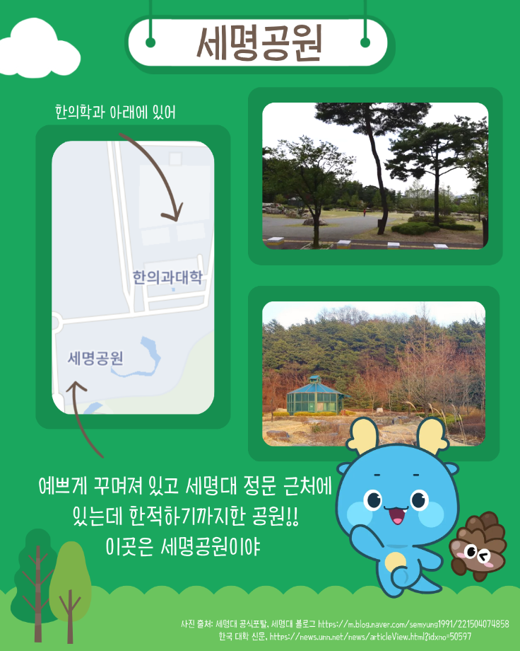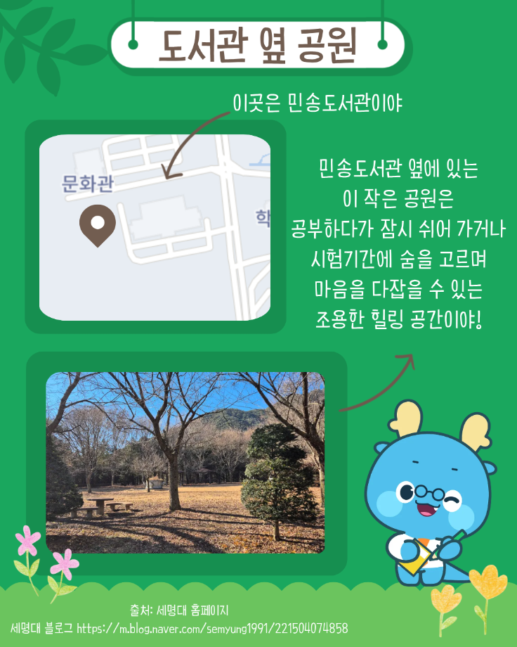 본문 시작 홈으로 MCC News 학과소개 교수소개 학과과정 MCC News MCC SNS 홈페이지가이드 미디어 정보통 학과 및 재학생 교수 및 졸업생 미디어 정보통 미디어 정보통 페이스북 트위터 프린트 세명대의 숨겨진 장소를 알려줄게! 미디어콘텐츠창작학과 936 2026-01-19 자세한 내용은 세명대학교 블로그에서 확인하실 수 있습니다. 목록 이전끄라몽 84회 CAT(고양이) 디자인 공모전 다음 2026년 제17회 장애인식개선 공모전 담당부서 : 미디어콘텐츠창작학과 담당자 : - 연락처 : 043-649-1741 최종수정일 : 2024-10-26 만족도조사 만족도 조사 이 페이지에서 제공하는 정보에 대하여 만족하시나요? 매우만족 만족 보통 불만족 매우불만족