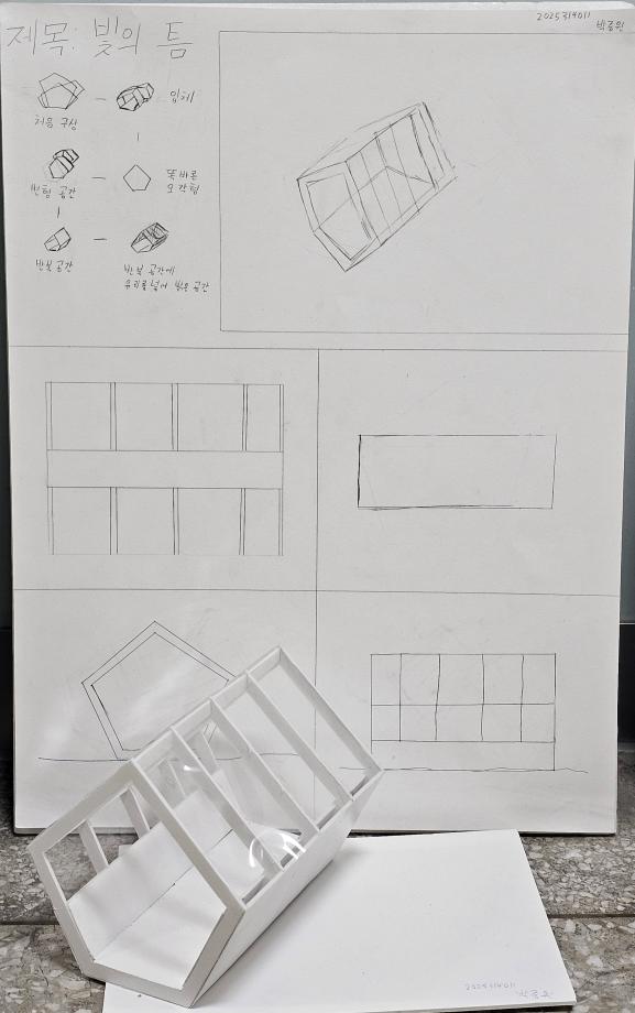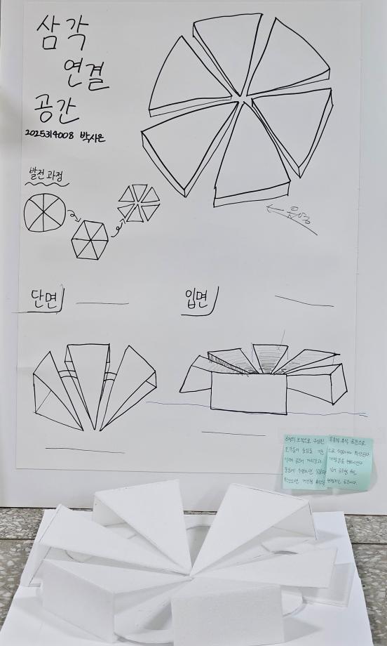 본문 시작 홈으로 커뮤니티 학과소개 교수소개 교육과정 학과 행사 및 활동 커뮤니티 홈페이지가이드 열린정보 학과일정 학과공지 채용정보 및 자료 열린정보 포토갤러리 먹거리, 즐길거리 포토갤러리 사진 사진 영상 사진 페이스북 트위터 프린트 사진 영상 1학년 중간 설계과제 건축학과 353 2025-10-30 1학년은 ‘건축공간구성’에서 스케치와 모형을 통해 공간을 탐구했습니다. 처음 도전한 판넬과 모델링이었지만, 각자의 아이디어와 독창성이 빛나는 작품들이 완성되었습니다 ✨ 건축가로 성장해갈 이들의 다음 걸음이 더욱 기대됩니다! 👣😊 목록 이전2학년 중간 설계과제 다음 세명대학교 홍보 포스터 만족도조사 만족도 조사 이 페이지에서 제공하는 정보에 대하여 만족하시나요? 매우만족 만족 보통 불만족 매우불만족