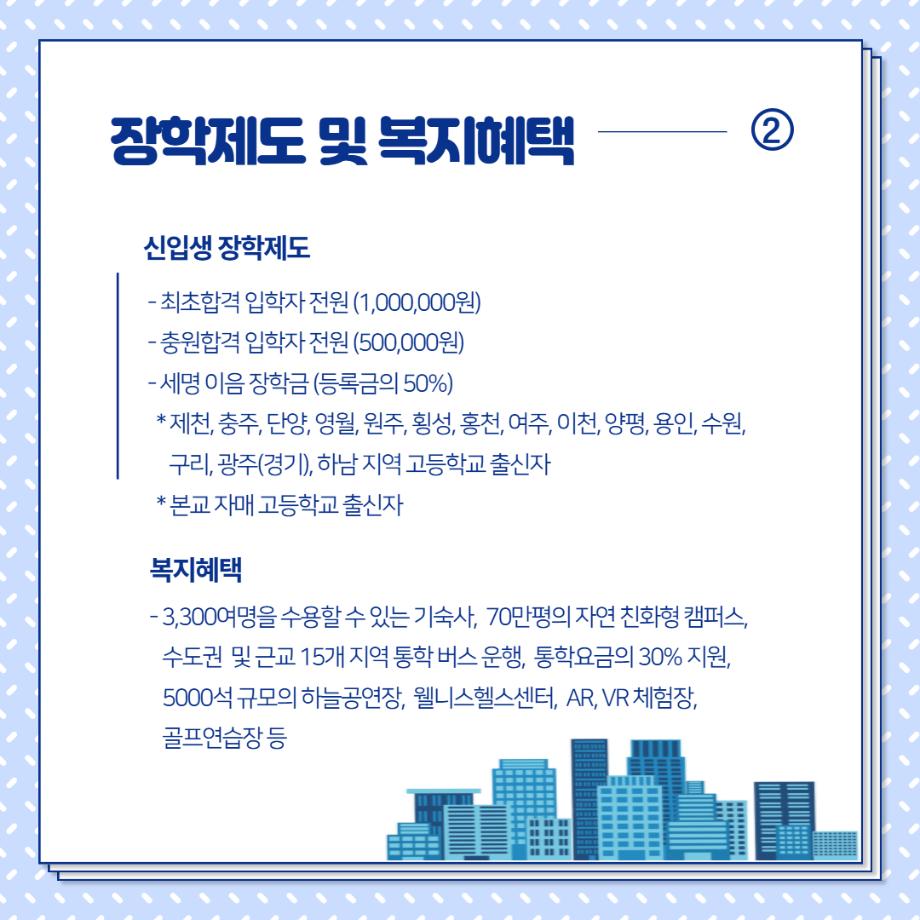 입시생을 위한 링크서비스 입학안내 수시모집 정시모집 편입학 Q&A 학과안내 성적자동산출 입시자료신청 대학소개 장학제도 >학생생활관(기숙사) >찾아오시는길 캠퍼스투어 >국제교류 >학군단(ROTC) >통학버스 입시생 레이어 닫기