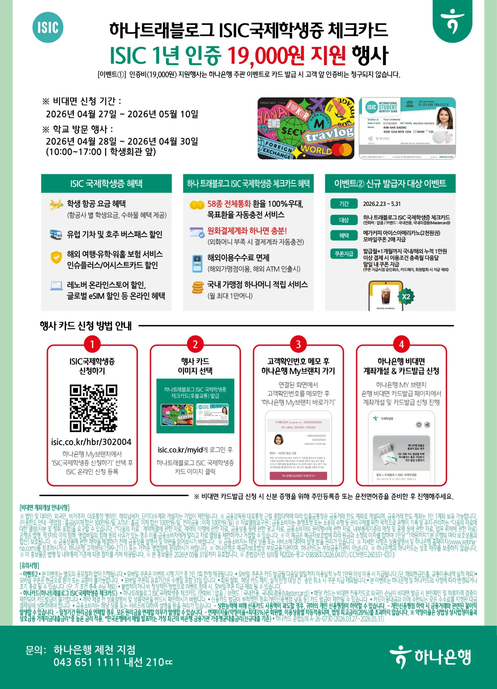 2026년 ISIC 국제학생증 발급비 지원 행사 안내